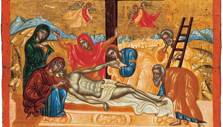 Megjithëse u kryqëzua nga dobësia për hirin tonë, Krishti, Fjala e gjallë dhe Perëndia i vërtetë, e mundi vdekjen, theu portat e përjetshme dhe u ngjall, duke çliruar ata që ishin robër që prej kohësh dhe duke i çuar në Parajsë. Vdekja u zhduk dhe agimi i jetës lindi.